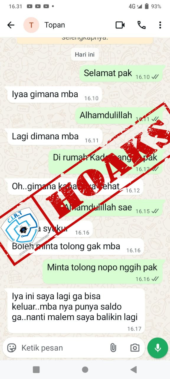 Faktanya, akun WhatsApp yang beredar tersebut tidak benar. Modus yang dilakukan pelaku dengan menghubungi salah satu ASN Dinas Pendidikan meminta sejumlah uang melalui pesan WhatsApp.