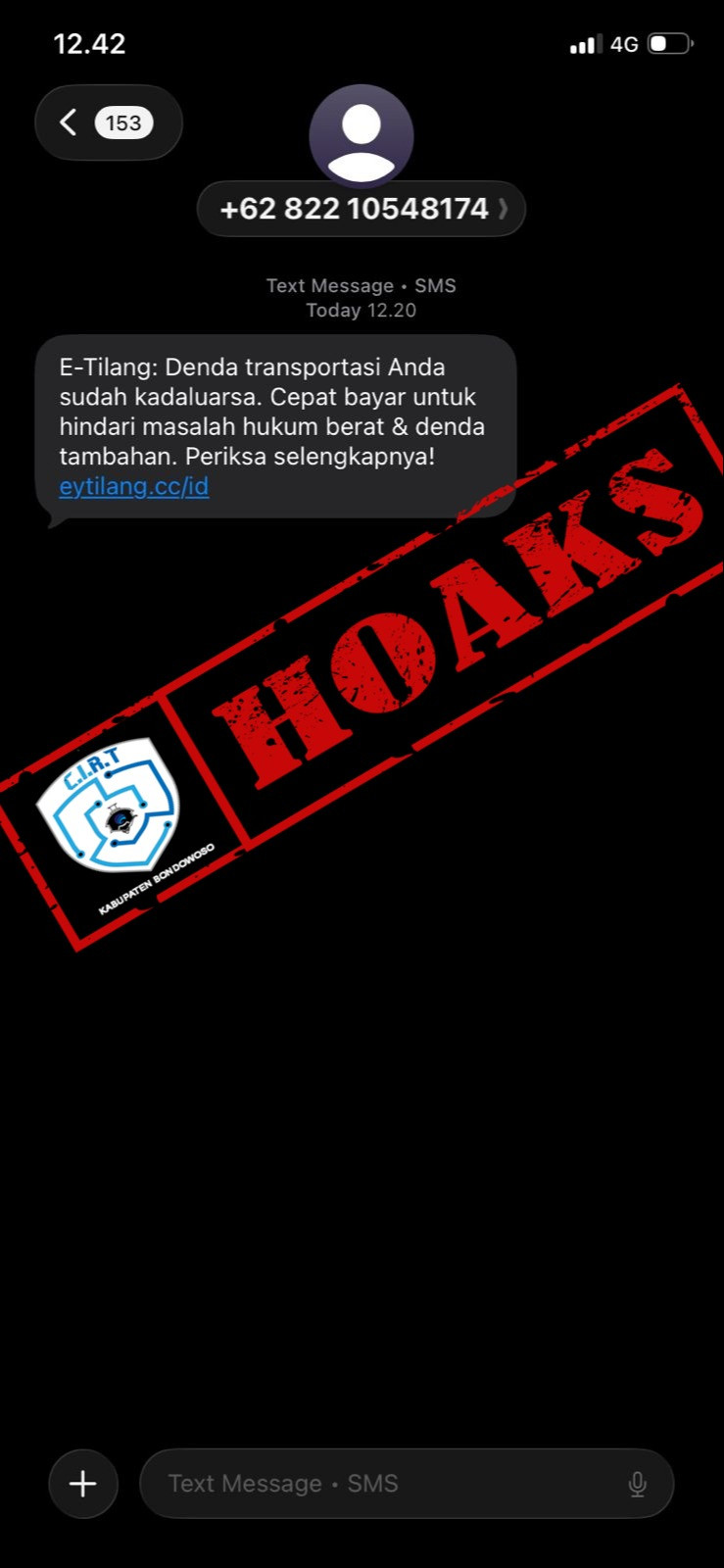 Beredar sebuah pesan singkat tentang E-Tilang melalui WhatsApp yang memuat sebuah tautan link untuk memasukkan informasi sensitif data pribadi dan pembayaran.
