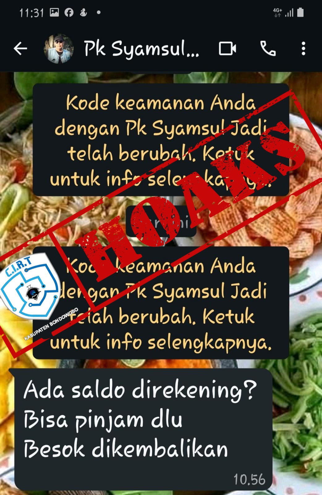Beredar sebuah pesan berantai Whatsapp yang menjelaskan bahaya dari pengiriman ucapan selamat dalam bentuk gambar dan video karena digunakan untuk mencuri informasi pribadi, dan dilaporkan bahwa lebih dari 500.000 korban telah ditipu. Berdasarkan hasil penelusuran, pesan berantai tersebut pernah beredar pada tahun 2018 serta kembali muncul pada 2020 dan merupakan informasi yang palsu. Narasi : Harap diperhatikan: Mulai dari 1 Maret, semua gambar "selamat pagi, selamat pagi, selamat akhir pekan, dll." Akan dikenakan biaya, dan itu adalah biaya dua arah (mengirim dan menerima). Silakan gunakan teks untuk salam Anda, Don tidak menggunakan gambar! Terima kasih Teman sekelas HK saya juga mengirimkannya: mulai besok, saya tidak akan memposting gambar online, lihat saja artikel berikut untuk memahaminya. Hapus semua foto dan video dengan ucapan seperti "Selamat pagi" dan "Selamat malam" secepatnya. Bacalah artikel berikut dengan seksama. Baca semua! Harap segera kirim pesan ini ke sebanyak mungkin teman untuk mencegah gangguan ilegal. # Peringat an dari pengacara Olga Nikolaevna : Catatan .! Bagi yang suka mengirim pesan "Selamat Pagi .!" , "Selamat siang .!", "Selamat malam .!" Orang di dalam gambar , tolong jangan kirim pesan "baik" ini. Hari ini , "Shanghai China International News" mengirim SOS ke semua pelanggan (ini ada lah pengingat ketiga) Para ahli menyaran kan : Jangan mengirim gambar dan video selamat pagi dan malam. Laporan tersebut me nunjuk kan bahwa peretas yang menyerang China merancang gambar-gambar ini. Gambar dan video ini indah , tetapi ada kode phishing yang tersembunyi di dalam nya. Ketika semua orang mengirim pesan ini , peretas mengguna kan perangkat Anda untuk mencuri informasi pribadi. Misal nya , informasi kartu bank dan data , dan dapat meretas ponsel Anda. Menurut laporan , lebih dari 500.000 korban telah di tipu dan di tipu. Jika Anda ingin menyapa orang lain, silah kan tulis ke ingin an dan salam Anda sendiri , dan kirim kan gambar dan video ucap an salam yang telah Anda buat agar Anda dapat melindungi diri sendiri dan keluarga serta teman-teman Anda. penting .! Demi keamanan, harap hapus semua pesan ucapan dan gambar dari ponsel Anda. Jika seseorang mengirimi Anda gambar seperti itu , harap segera hapus dari perangkat Anda. Kode berbahaya membutuh kan waktu untuk di terap kan , jadi jika Anda segera bertindak , itu tidak akan membahaya kan. Beri tahu semua teman Anda untuk mencegah peretasan. Sapa dengan kata-kata Anda sendiri , dan hanya kirim kan gambar dan video yang Anda buat untuk menyambut Anda. Ini sepenuh nya aman untuk Anda , keluarga , dan teman Anda. Mohon mengerti maksud saya dengan benar .! Ponsel setiap orang terpasang dengan kartu bank , dan ponsel setiap orang memiliki banyak kontak. Gambar ucapan semacam ini yang dibuat oleh peretas tidak hanya menimbulkan ancaman bagi diri Anda sendiri , tetapi juga mengancam semua kontak di ponsel , teman , dan kenalan Anda! Ini adalah kenyataan yang kejam .! ️! ️! ️ Beberapa orang telah menerima panggilan dari nomor berikut : Telepon : +375602605281, Telepon : +37127913091 Telepon : +37178565072 Telepon : +56322553736 Telepon : +37052529259 Telepon : +255901130460 Atau dari +371 hingga +375 * 381 ❗❗❗Jika Anda menelepon balik, mereka dapat menyalin daftar kontak Anda dalam waktu 3 detik , dan jika ponsel Anda berisi informasi kartu bank atau kartu kredit , itu juga dapat disalin. Kode + 375-Belarusia. Kode + 371-Latvia. + 381-Serbia + 563-Valparaiso + 370-Vilnius + 255-Tanzania Panggilan ini mungkin berasal dari ISIS. ❗❗❗ * Jangan pernah menjawab * Dan * jangan menelepon balik * ❗❗❗ Selain itu , ❗❗} ❗} jangan tekan No. 90 atau No. 09, jangan di tampil kan di ponsel Anda atas permintaan pelanggan mana pun. Ini ada lah teknik baru yang digunakan oleh terroris untuk mengunjungi kartu SIM seluler Anda dan menjadi kan Anda kaki tangan .! ! ! * Kirim pesan ini ke sebanyak mungkin kerabat dan teman untuk mencegah gangguan yang tidak sah .! ! !