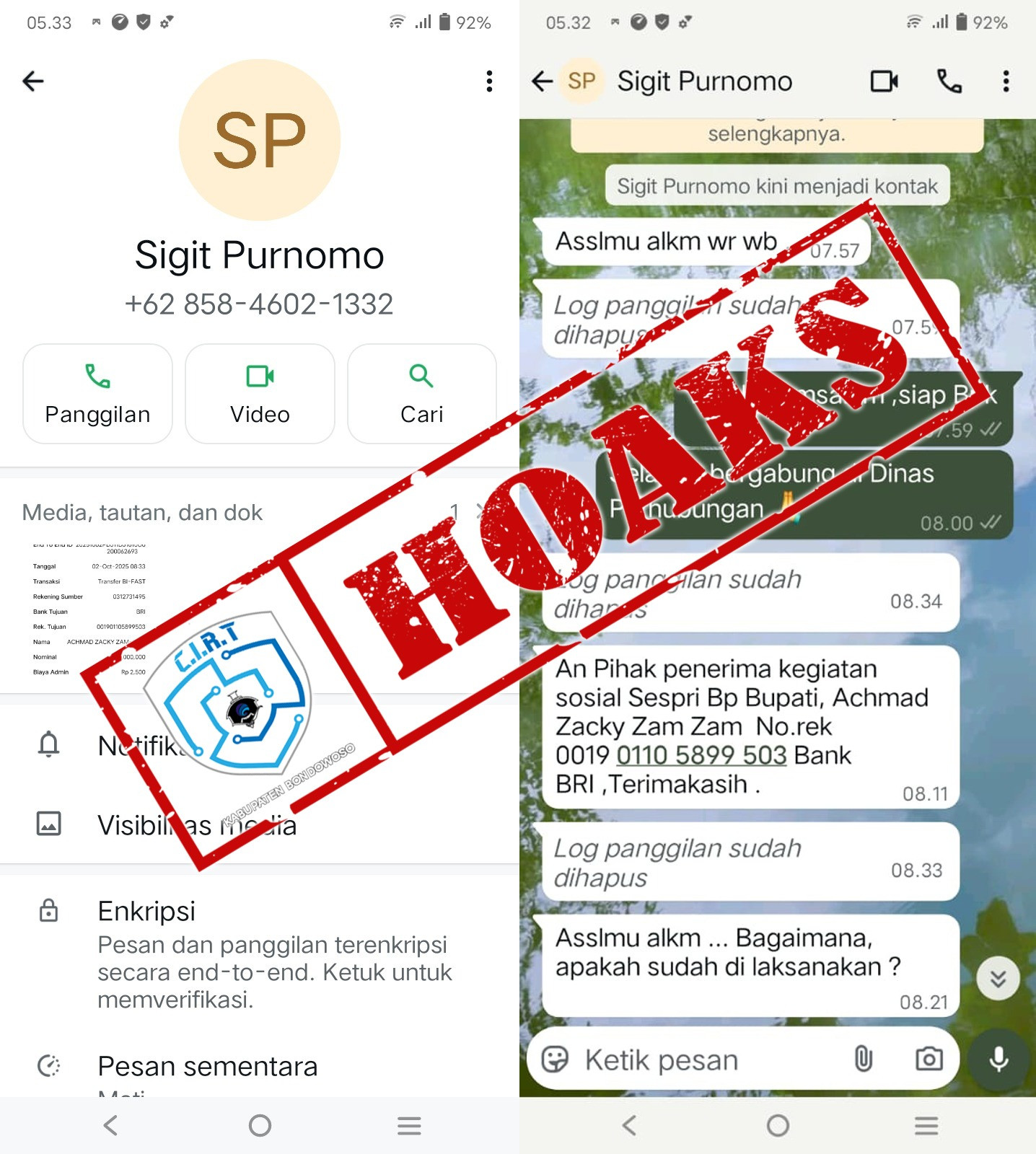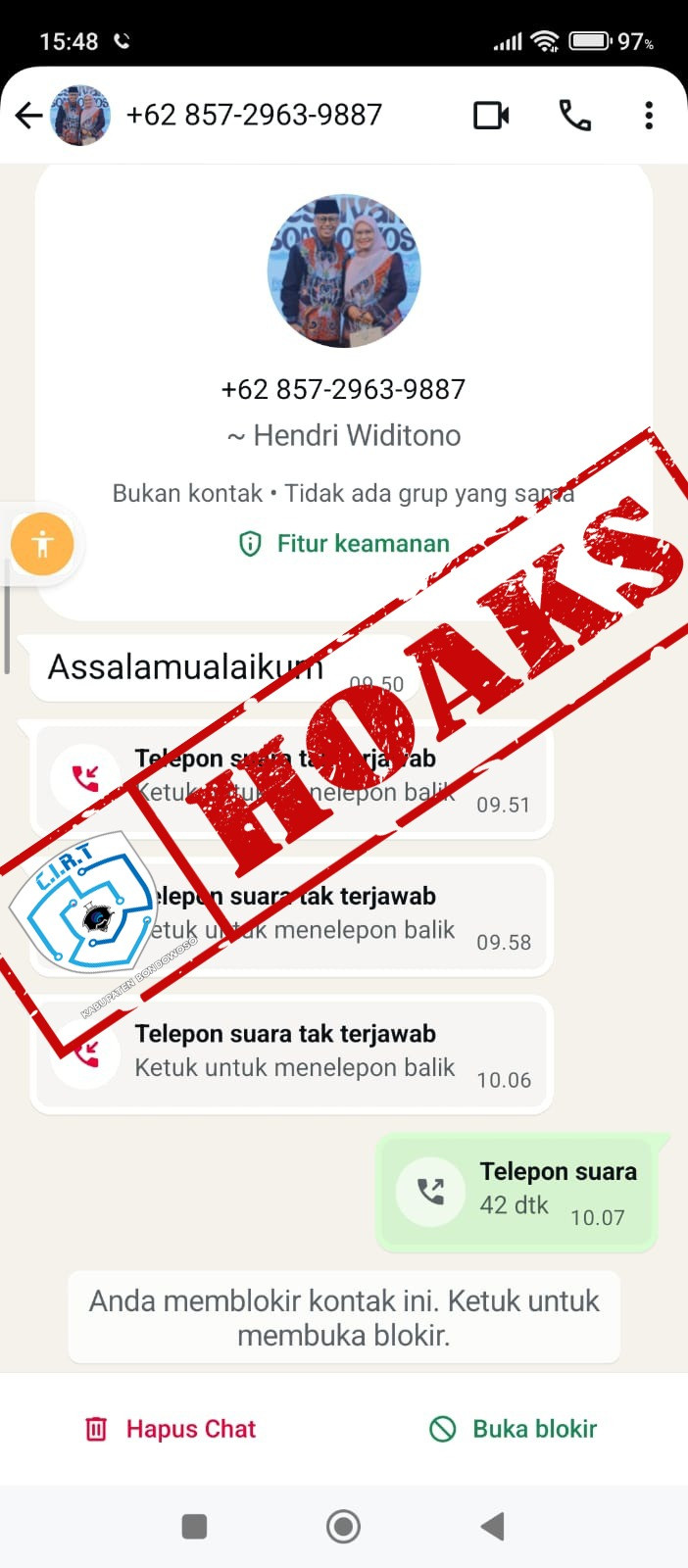 Faktanya, akun WhatsApp yang beredar tersebut merupakan modus penipuan. Bapak Sigit Purnomo mengklarifikasi bahwa nomor akun yang beredar mengatasnamakan dirinya adalah HOAKS.