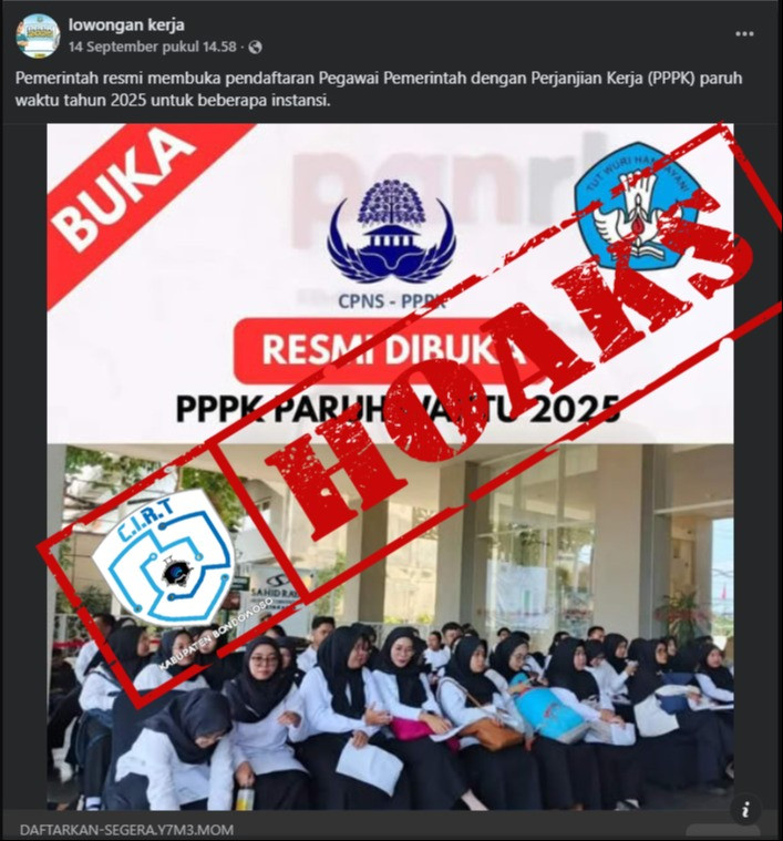 Beredar unggahan di media sosial berisi tautan WhatsApp yang diklaim sebagai akses pendaftaran Calon Pegawai Negeri Sipil (CPNS) periode 2025. Unggahan tersebut beredar pada Selasa, 15 September 2025.