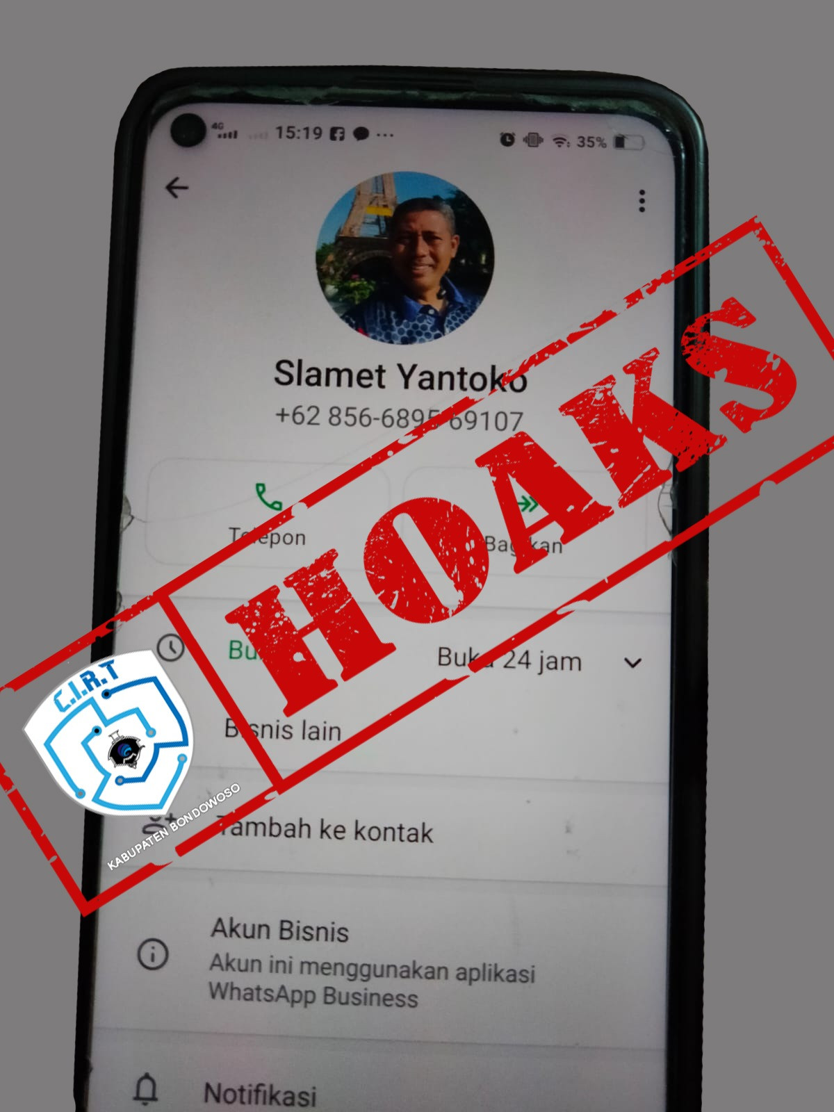 [HOAKS] Akun WhatsApp Mengatasnamakan Slamet Yantoko Kepala Satpol PP Kabupaten Bondowoso
