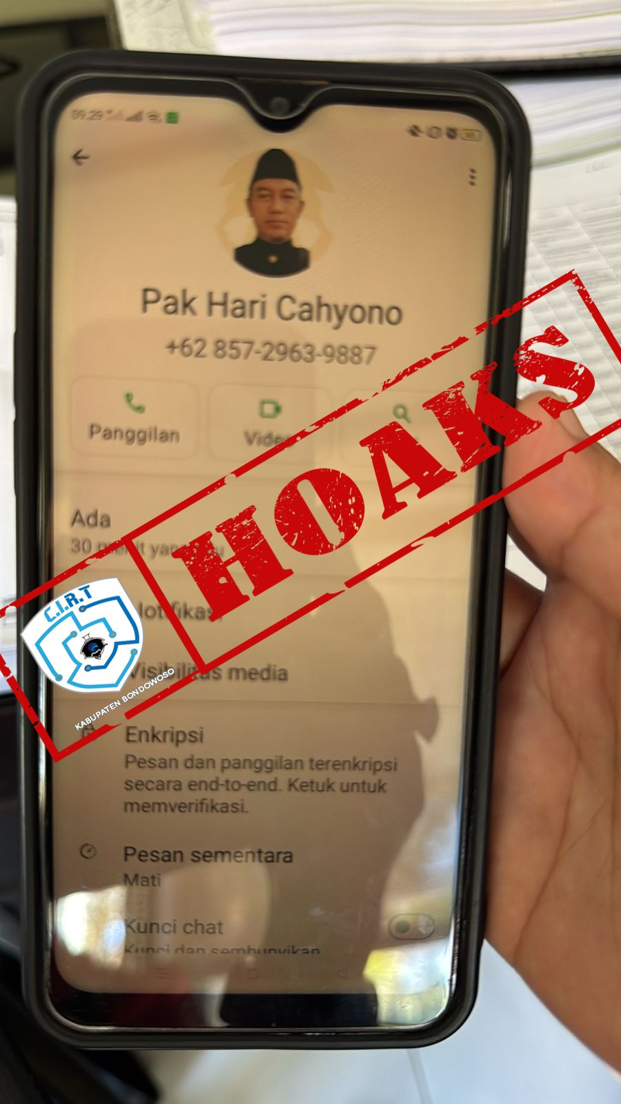 [HOAKS] Akun WA Mengatasnamakan Hendri Widotono selaku Kepala Dinas Peternakan dan Perikanan Kabupaten Bondowoso