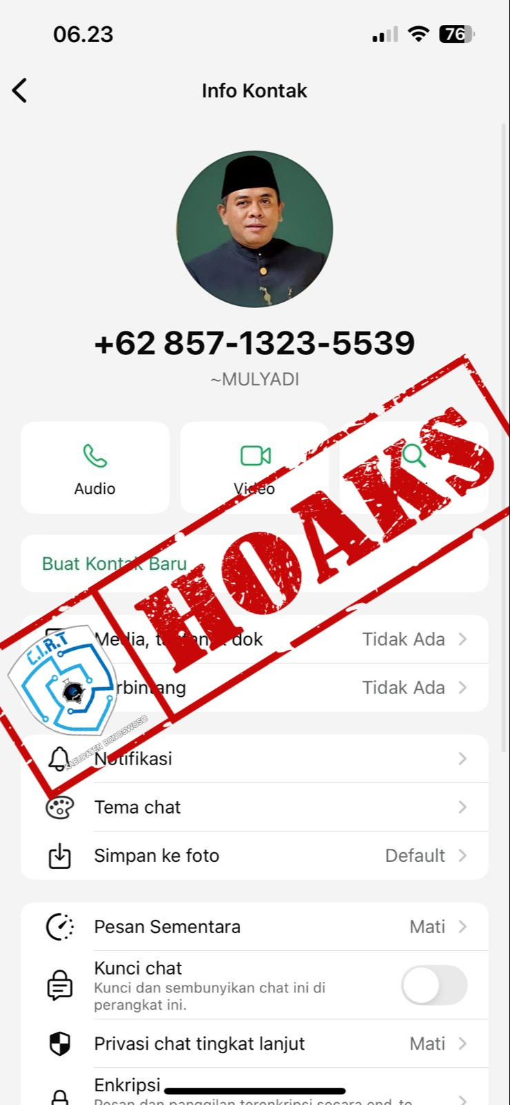 [HOAKS] Akun WA Mengatasnamakan Mulyadi selaku Kepala Dinas Pertanian dan Ketahanan Pangan Kabupaten Bondowoso